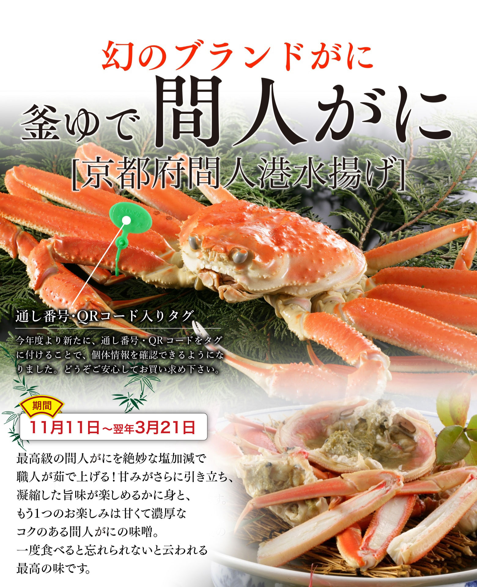 ※間人がには12月1日〜1月14日はお届け不可となります。