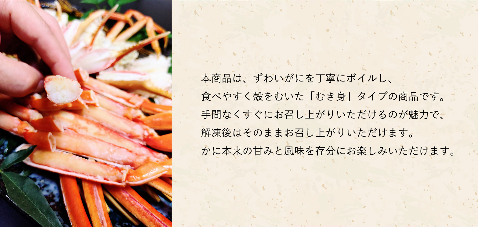 | 茹でずわいがに ハーフポーション 冷凍 |