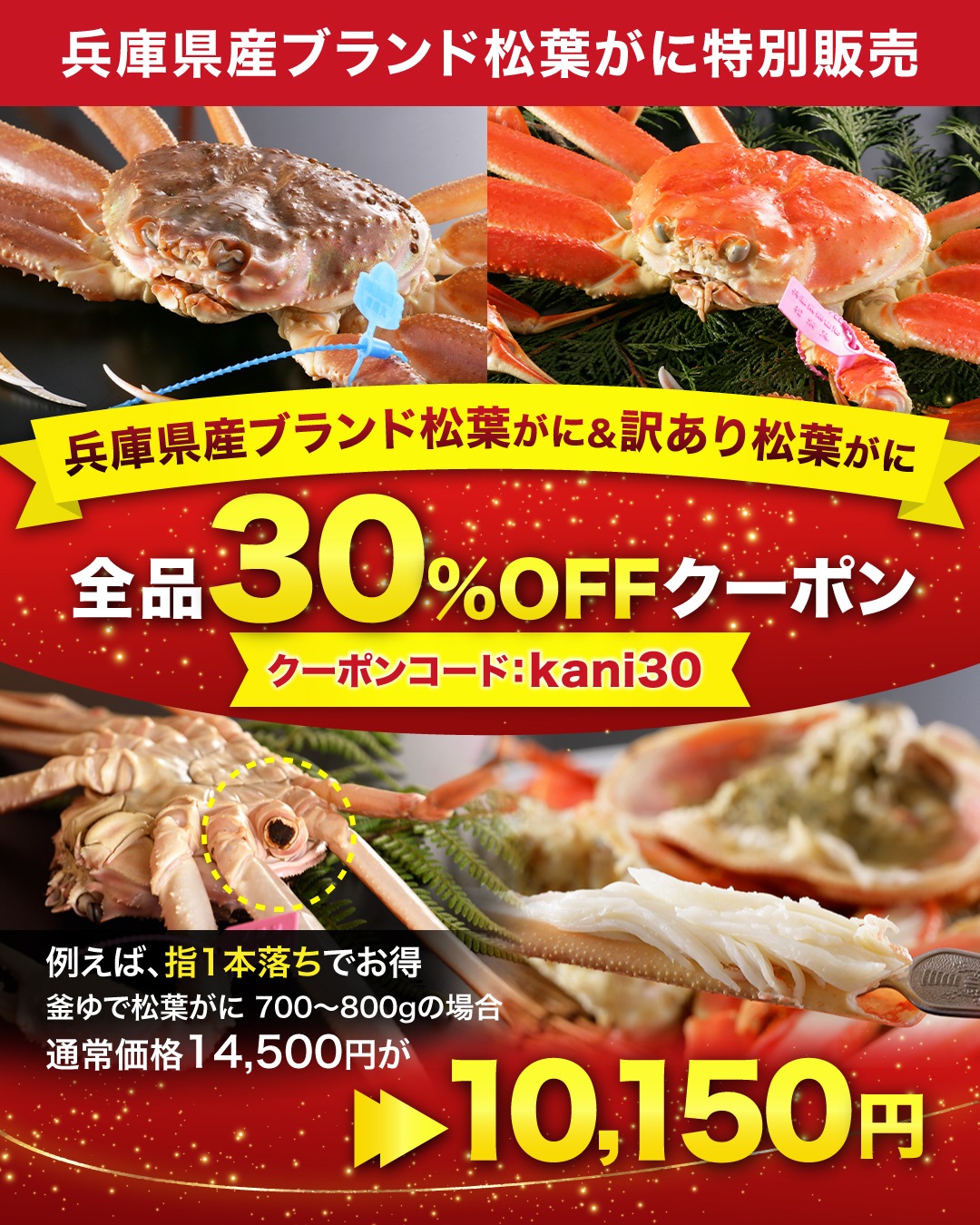 兵庫県産 松葉がにを【30%OFF】でご案内いたします。
